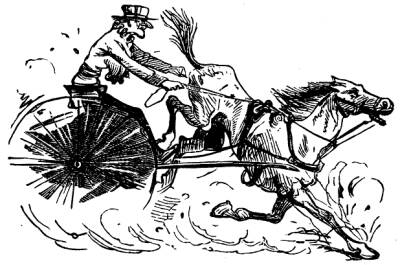 kicking at the place where they're joined, would permit, And wandered off, just about as far As I conveniently could, and then I sat down on a milestone and raised my voice to Heaven, and cried aloud, that, weather permitting, General GRANT should never, never, NEVER, go back to the White House, not if I could help it, To puff on his cigar, Said ICHABOD BOGGS, said I. [4] We hope none of our readers will labor under the impression that we look upon the above effusion as a poetical one, but, in this day of many isms, it may happen that the above style may become prevalent, and we think it our duty to present everything that is new. EDS. 2.02 TO HARNESS. Mr. Punchinello on the Turf. History relates that the era of Horse-racing commenced about the year 680 B. C., but it was some time after that when Mr. PUNCHINELLO made his debut as a candidate for the honors of the turf. To put the matter more concisely, it is just six days since he drove his horse "Creeping Peter" on the track at Monmouth Park, Long Branch. The only object which Mr. P. had in view, when he purchased his celebrated trotter and put him into training, was the improvement of the breed of American horses. While our BONNERS, VANDERBILTS and GRANTS are devoting all their surplus time and means to this great end, Mr. P., in placing the name of his yellow horse in the hands of the poolseller, would scorn to have a less noble aim. But this great object need not interfere with others of less importance, and therefore Mr. P. will not deny that, after having exhibited to his friends and the sporting fraternity in general, his little investment in fancy horseflesh, he made up a very satisfactory betting-book. Now Mr. P. believed,—and events proved him to be correct,—that when his friends and the sporting fraternity saw his horse, they would bet heavily against him. Mr. P., however, in all the pride of amateur ownership, bet quite as heavily upon his noble steed. His friends and the above-mentioned fraternity chuckled and winked behind his back, but although Mr. P. heard them chuckle and knew that they were winking, his belief in his final success never wavered. Any ordinary observer might be expected to remark that Creeping Peter was not entirely without blemish. Besides being spavined and having three of his hoofs injured by sand-crack, he had poll-evil, fistulas, malanders, ring-bone, capped hock, curb, splint, and several other maladies which made him a very suitable horse for the general public to bet against. But Mr. P.'s courage never quailed! When he made his appearance on the track (for he drove his horse himself) he was the object of general attention. The following view (from a photograph by ROCKWOOD) gives an excellent idea of the horse and driver. Nearly everybody on the ground advised Mr. P. to leave his cloth in the stable, for it would certainly interfere with the speed of his horse and probably get wrapped up in the wheels and cause an accident. But Mr. P. would listen to nothing of the sort. He told everybody that he wasn't going to catch cold in his knees, even if he lost the race, and that he was perfectly willing to run the risk of accidents. For the benefit of his readers, however, Mr. P. will lift up this heavily shotted lap-cloth and show what was under it. Here is arranged a steam-engine, which drives the wheels of the vehicle, and which will of course propel the whole turnout, horse and all, at a great rate of speed. It will now be easily perceived why Mr. P. persisted in keeping his lap-cloth over his knees. The entries were as follows: