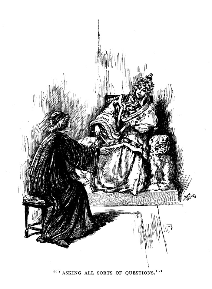 Her husband laughed. "I mounted some stone steps, and was soon shown into a room where stood a lady waiting for me. As the light of the lamp carried by the maid fell upon her face, I thought I had never seen a more beautiful woman. Her dress, her carriage, and her speech showed her to be a lady of rank. She was very young, scarcely twenty, I thought.