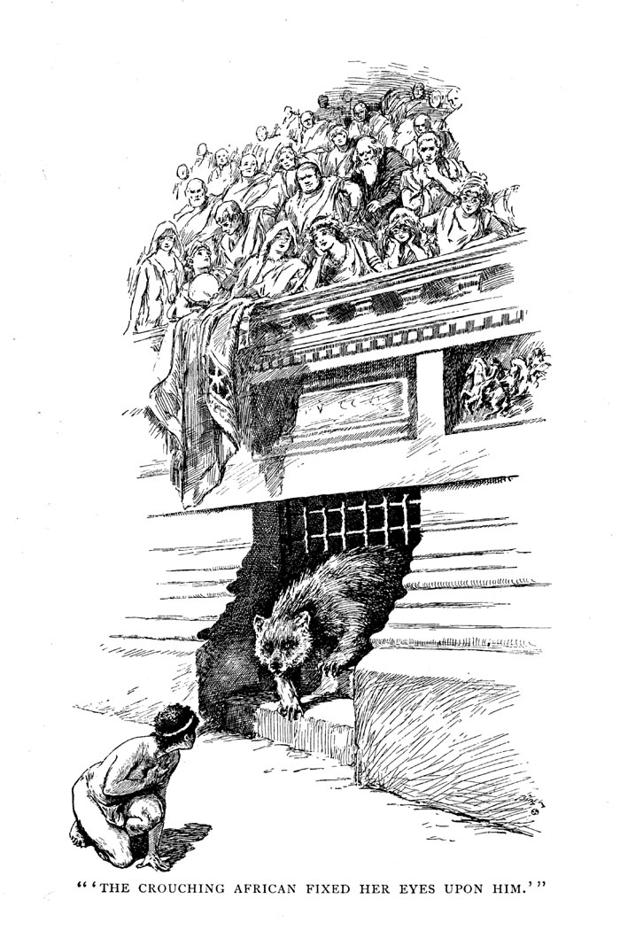 "Galen bought her from the man at the price of an ape, and tried to have her educated as a servant, but she was a wild creature and could not be taught much. In some way or other the people in charge of the amphitheater got possession of her, and I heard that she was to figure in the games at an approaching great occasion. I was shocked and grieved to hear this, for I had taken an interest in the girl, and I knew what it meant for her to take part in the games in the arena. I tried to buy her, but it was of no use: she was wanted for a particular purpose. On the day she was to appear in the arena I was there."