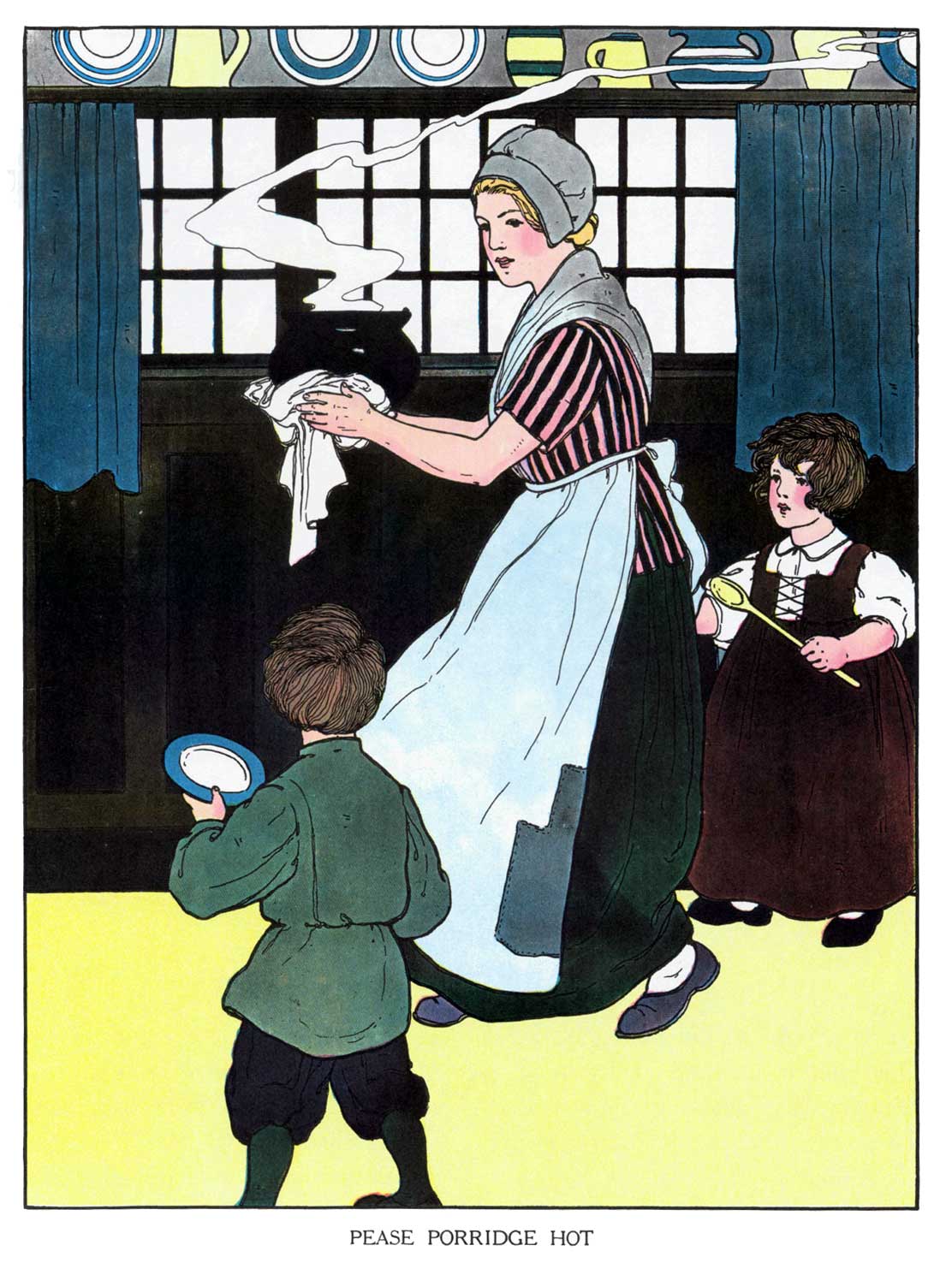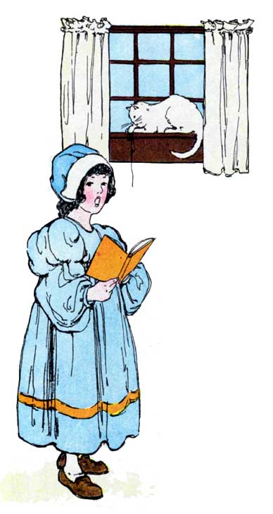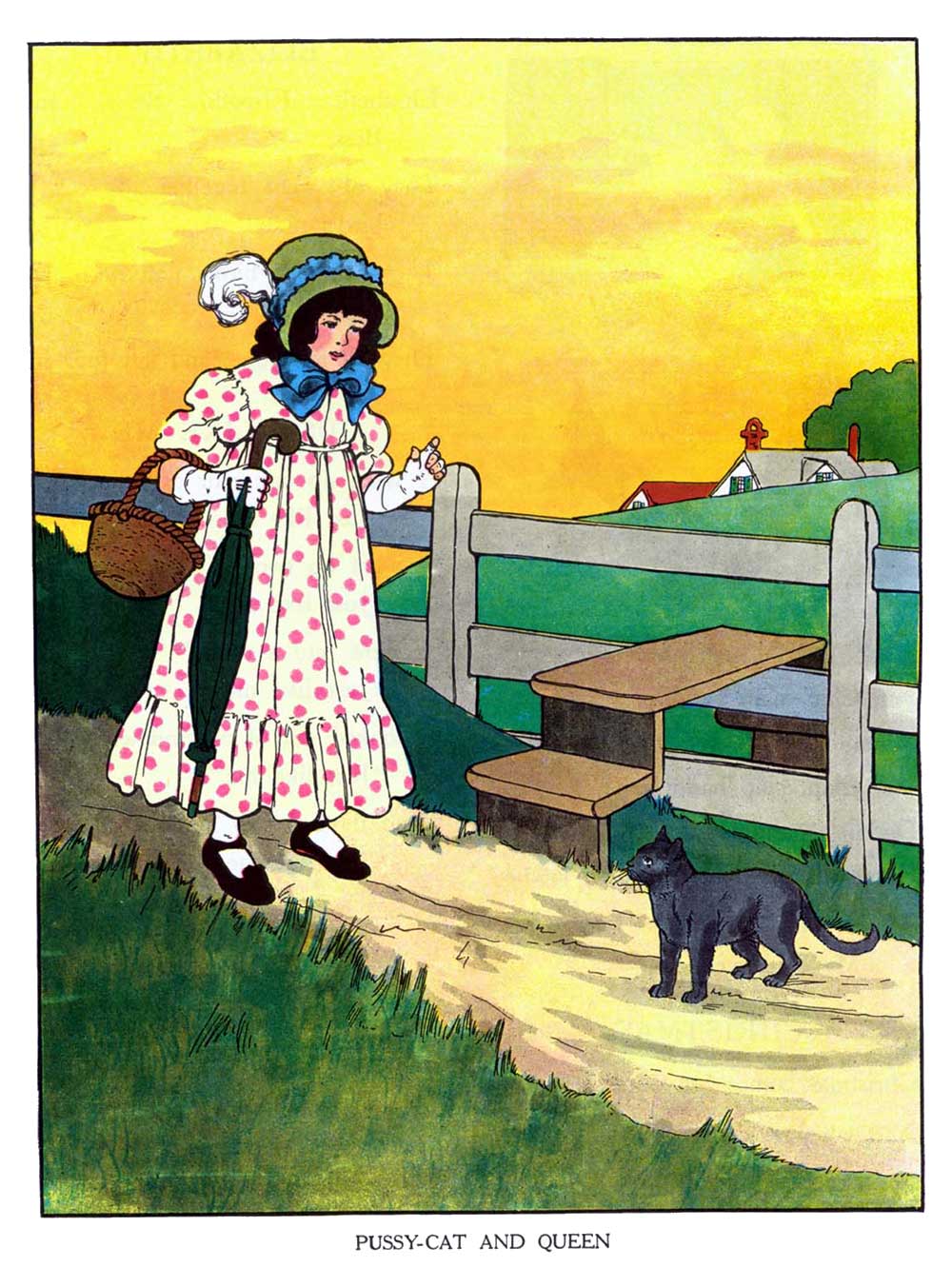 Pussy-cat ate the dumplings, the dumplings, Pussy-cat ate the dumplings. Mamma stood by, and cried, "Oh, fie! Why did you eat the dumplings?" |