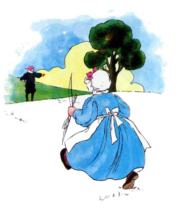 Four and Twenty tailors Went to kill a snail; The best man among them Durst not touch her tail; She put out her horns Like a little Kyloe cow. Run, tailors, run, or She'll kill you all e'en now. AROUND THE GREEN GRAVEL