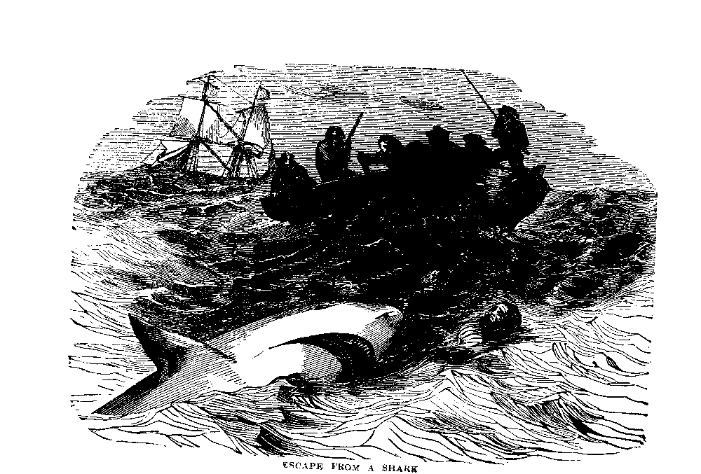 My sensations were indescribably horrible. I may occasionally write or talk of the circumstance with levity, but whenever I recall it to mind, I tremble at the bare recollection of the dreadful fate that seemed inevitable. My companion was not so expert a swimmer as I was, so that I distanced him many feet, when I heard him utter a faint cry. I turned round, convinced that the shark had seized him, but it was not so; my having left him so far behind had increased his terror, and induced him to draw my attention. I returned to him, held him up, and encouraged him. Without this he would certainly have sunk; he revived with my help, and we reached the sandy beach in safety, having eluded our enemy, who, when he neither saw nor heard us, had, as I concluded he would, quitted the spot.
