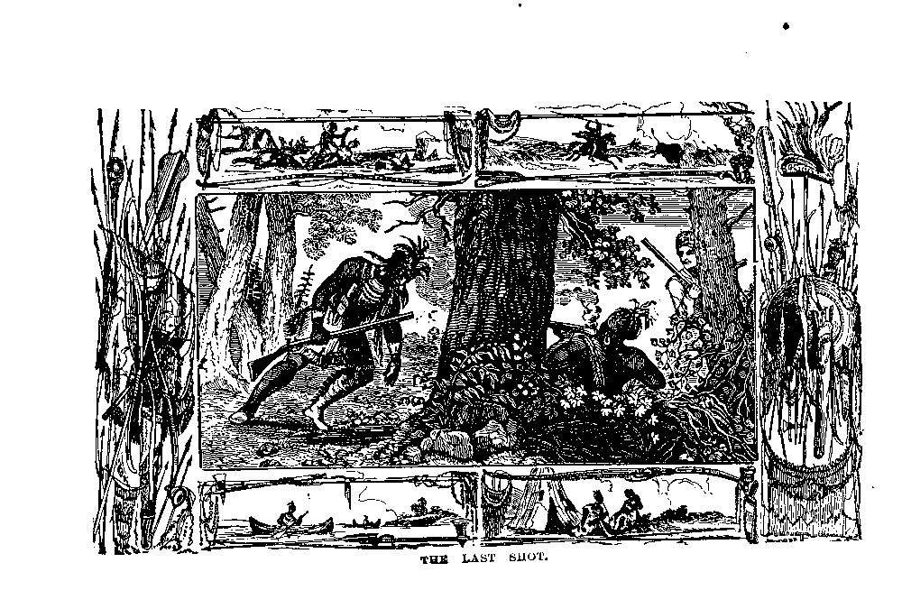 A few years after, Susan Cooper,--no longer "pretty Susan," for time and grief had done their work--heard, late one night, a hurried knock, which was repeated several times before she could open the door, each time more loudly than before. She called to ask who it was at that late hour of night. A few hurried words in Iroquois was the reply, and Susan congratulated herself on having spoken before unbarring the door. But, on listening again, she distinctly heard the same voice say, "Quick--quick!" and recognized it as the Indian woman's voice she had nursed. The door was instantly opened, when the squaw rushed into the hut, seized Susan by the arm, and made signs to her to come away. She was too much excited to remember then the few words of English she had picked up when living with the white woman. Expressing her meaning by gestures, with a clearness peculiar to the Indians, she dragged rather than led Susan from the hut. They had just reached the edge of the forest when the wild yells of the Indians sounded in their ears. Having gone with Susan a little way into the forest, her guide left her. For nearly four hours she lay there, half dead with cold and terror, not daring to move from her place of concealment. She saw the flames of the dwelling, where so many lonely hours had been passed, rising above the trees, and heard the shrill "whoops" of the retiring Indians. Nero, who was lying by her side, suddenly rose and gave a low growl. Silently a dark figure came gliding among the trees directly to the spot where she lay. She gave herself up for lost; but it was the Indian woman, who came to her, and dropped at her feet a bag of money, the remains of her late husband's savings. The grateful creature knew where it was kept; and while the Indians were busied examining the rifles and other objects more interesting to them, had carried it off unobserved. Waving her arm around to show that all was now quiet, she pointed in the direction of Wilton's house, and was again lost among the trees.