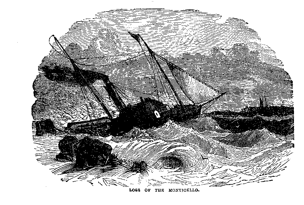 The gale continued four days, at the expiration of which time, it broke. At midnight, the wind hauled round to the eastward, and the weather became so excessively cold, that, although we commenced heaving in the cable at five A.M., yet we did not get the anchor until nine that night. Close-reefed topsails were set on the ship and we stood over to the English coast, and anchored to the westward of Dungeness. During the whole period of this gale, which lasted four days, Captain G. never for one moment left the deck; and although well advanced in years, yet his iron constitution enabled him to overcome the calls of nature for rest; and, notwithstanding the situation of the ship, was, perhaps more critical than many of those less fortunate vessels which stranded upon the rocks, yet his coolness, and the seaman-like manner with which the ship was handled, no doubt were the means of our being saved.