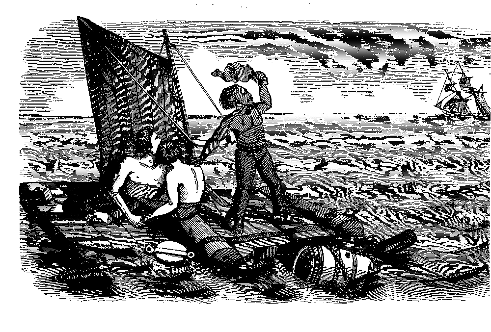 In this time of despair, it occurred to the fourth mate to send a man to the foremast, hoping, but scarce daring to think it probable, that some friendly sail might be in sight. The man at the foretop looked around him; it was a moment of intense anxiety; then waving his hat, he cried out, "A sail, on the lee-bow!"