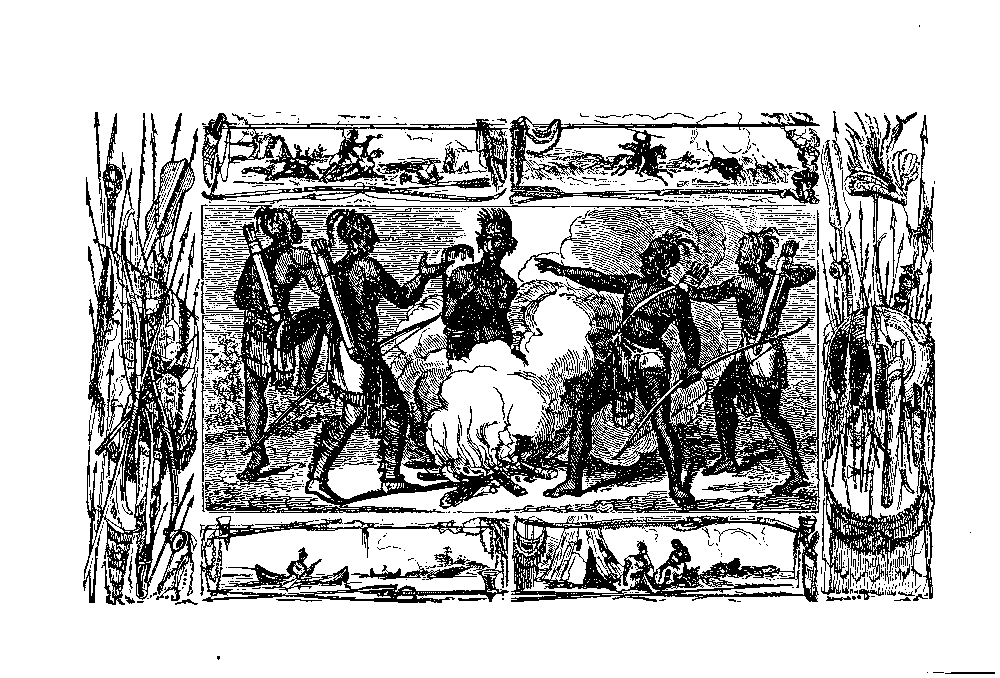 The effect of the concussion was to throw down the blazing materials level with the ground, so as to produce a subsidence of the flames, and then Thompson was permitted to remain exempt from their influence. Before day the Indians were off, and Thompson being left alone, was compelled to throw off the body of the negro, while strength was left him, and before it putrefied.