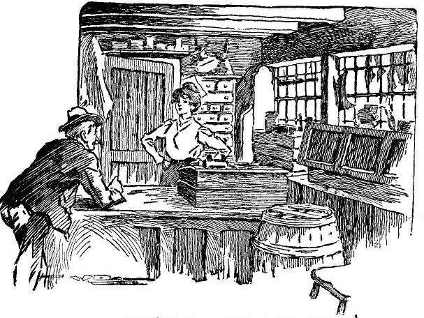 “Miss Kybird standing in the doorway of the shop.”