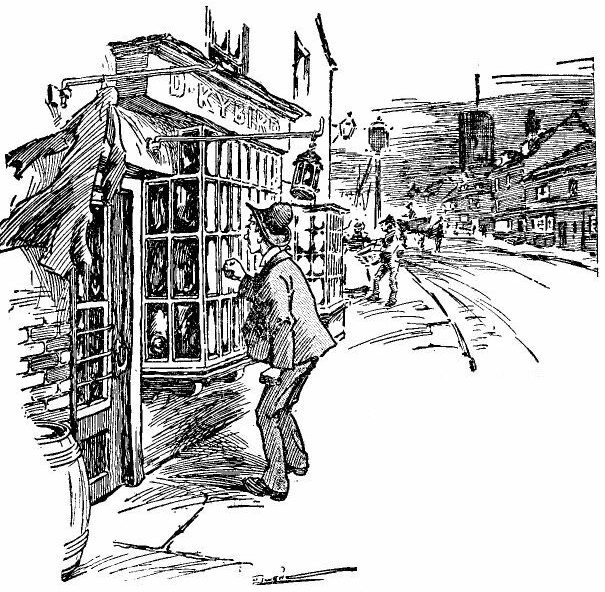 “The proprietor eyed him with furtive glee as he passed.”
