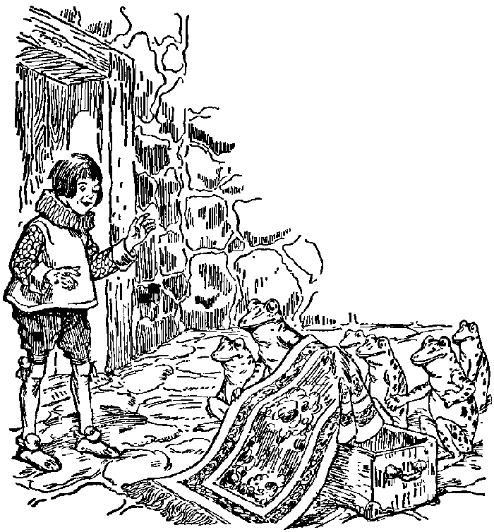 When the dwarf noticed what they were about, he exclaimed in a great rage, "Is this how you damage my beard? Not content with making it shorter before, you are now making it still smaller, and completely spoiling it. I shall not ever dare show my face to my friends. I wish you had missed your way before you took this road." Then he fetched a sack of pearls that lay among the rushes, and, not saying another word, hobbled off and disappeared behind a large stone.