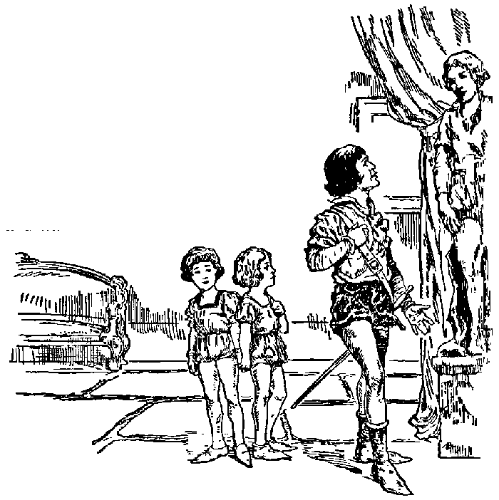 The bear quickly came towards them, but, as he reached their side, suddenly the bear-skin slipped to the ground, and there before them was standing a handsome man, completely garmented in gold, who said—