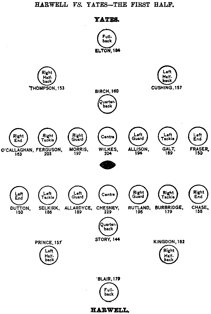 Then Harwell lined up along the fifty-five-yard line, with the ball in their possession, and the south goal behind them. And Yates scattered down the field in front. And the linesmen placed their canes in the turf, the referee and the umpire walked into the field, and the stands grew silent save for the shrill voice of a little freshman on the west stand who had fallen two bars behind in "This is Harwell's Day," and needs must finish out while his breath lasted.
