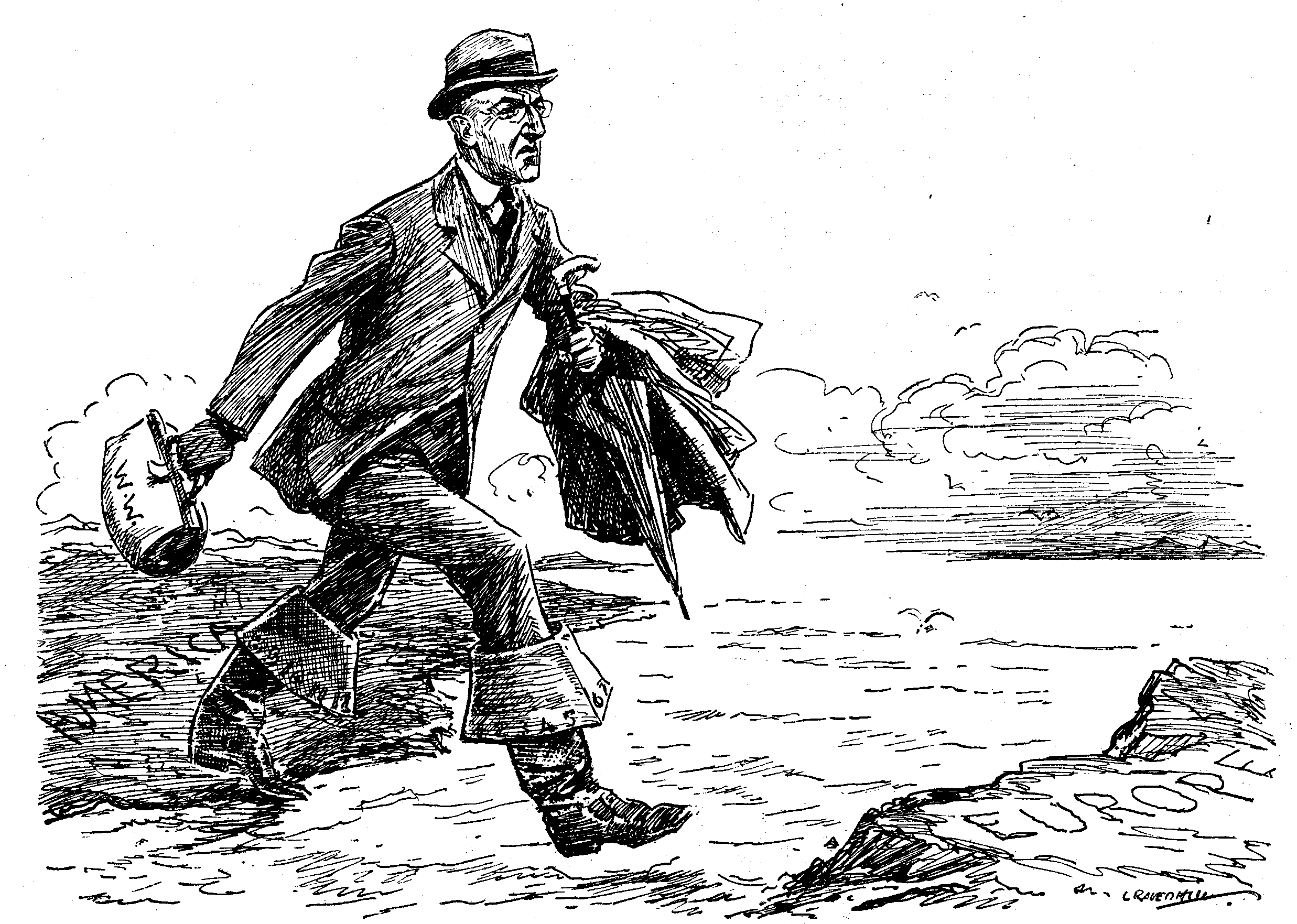 PRESIDENT WILSON (quitting America in his Fourteen-League-of-Nations Boots). "IT'S TIME I WAS GETTING BACK TO A HEMISPHERE WHERE I REALLY AM APPRECIATED."