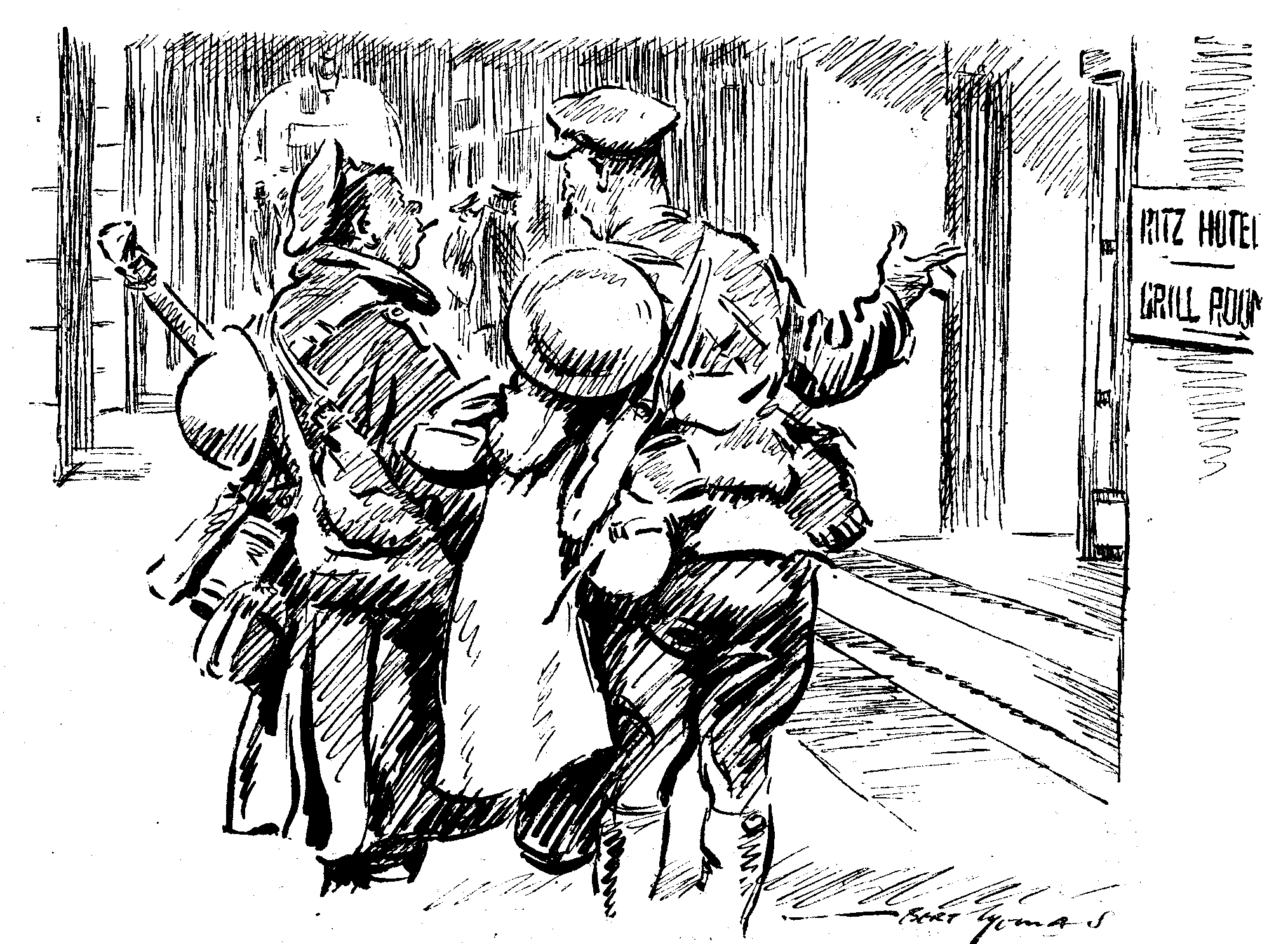 Demobilisation in the Navy, whatever it may be in the Army, is a simple affair. You are first sent for by the Master-at-Arms, who glares, thrusts papers into your trembling hand and ejects you violently in the direction of the Demobilising Office. Here they regard you curiously, stifle a yawn, languidly inspect your papers and send you to the Paymaster, who, after wandering disconsolately round the Pay Office, exclaiming pathetically, "I say, hasn't anyone seen that Mixed Muster book? It must be somewhere, you know," returns you without thanks to the D.O., where they tell you to call again in three days' time. On returning you are provided with a P.I.O. and numerous necessary papers, requested to sign a few dozen forms, overwhelmed with an unexpected largesse of pay and sent forth on that twenty-eight days' leave from which no traveller returns. There's nothing in it at all; the whole thing only lasts four days. They do it by a system, I believe.
