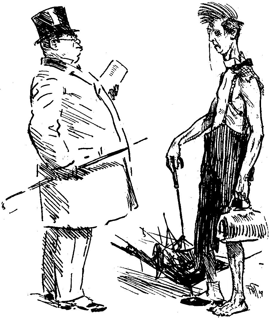 This Schedule is splendid in its way, but why can't they be honest? They must know that lots of us in our great national army are in ordinary life just rogues and vagabonds. The Schedule ignores such honest tradesmen. How is a respectable tramp to know when his group is called for demobilisation if he is not even given a group? What a nation of prigs and pretenders we are!
