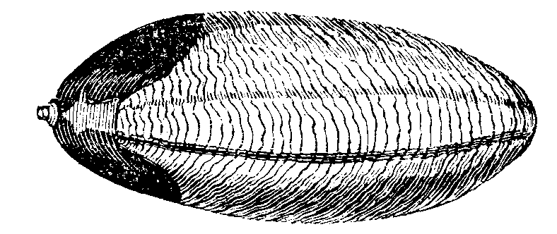 The most remarkable species of Cuttle-fish inhabits the British seas; and, although seldom taken, its bone or plate is cast ashore on different parts of the coast from the south of England to the Zetland Isles. We have picked up scores of these plates and bunches of the egg-bags or grapes, after rough weather on the beach between Worthing and Rottingdean; but we never found a single fish.