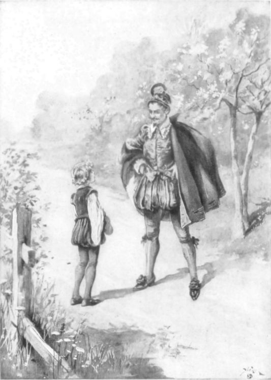 The low stone guard-wall of old Clopton bridge, built a hundred years before by rich Sir Hugh, sometime Mayor of London, was lined with straddling boys, like strawberries upon a spear of grass, and along the low causeway from the west across the lowland to the town, brown-faced, barefoot youngsters sat beside the roadway with their chubby legs a-dangle down the mossy stones, staring away into the south across the grassy levels of the valley of the Stour.