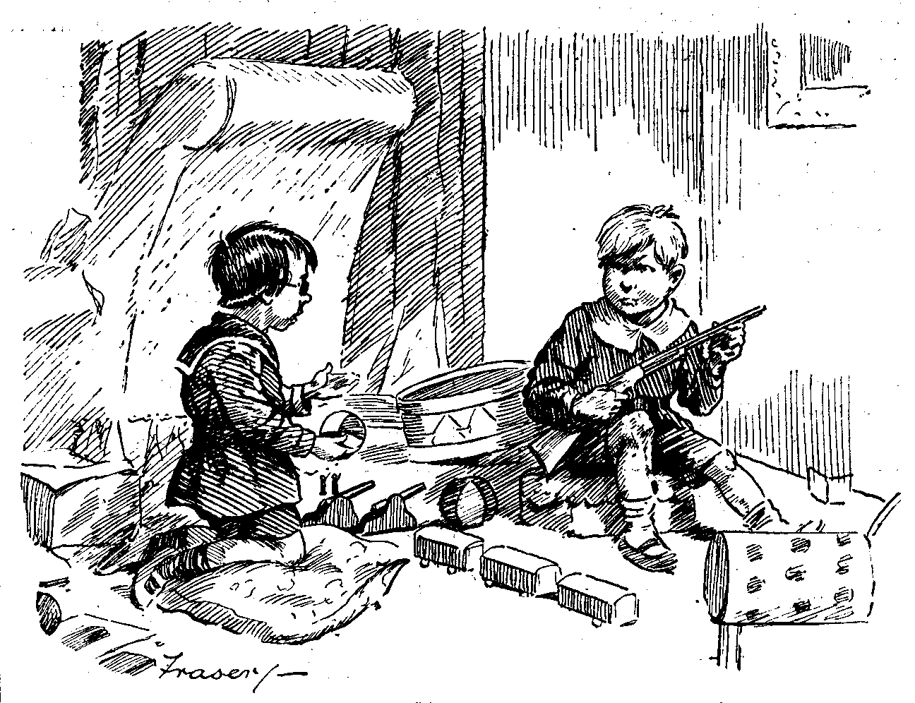 "HOW PLEASANT IT IS, MY DEAR HORACE, TO PLAY WITH ONE'S TOYS WITHOUT INCURRING THE RISK OF HAVING ONE'S ENJOYMENT MARRED BY THE TRAGIC DISCOVERY OF THEIR TEUTONIC ORIGIN!"