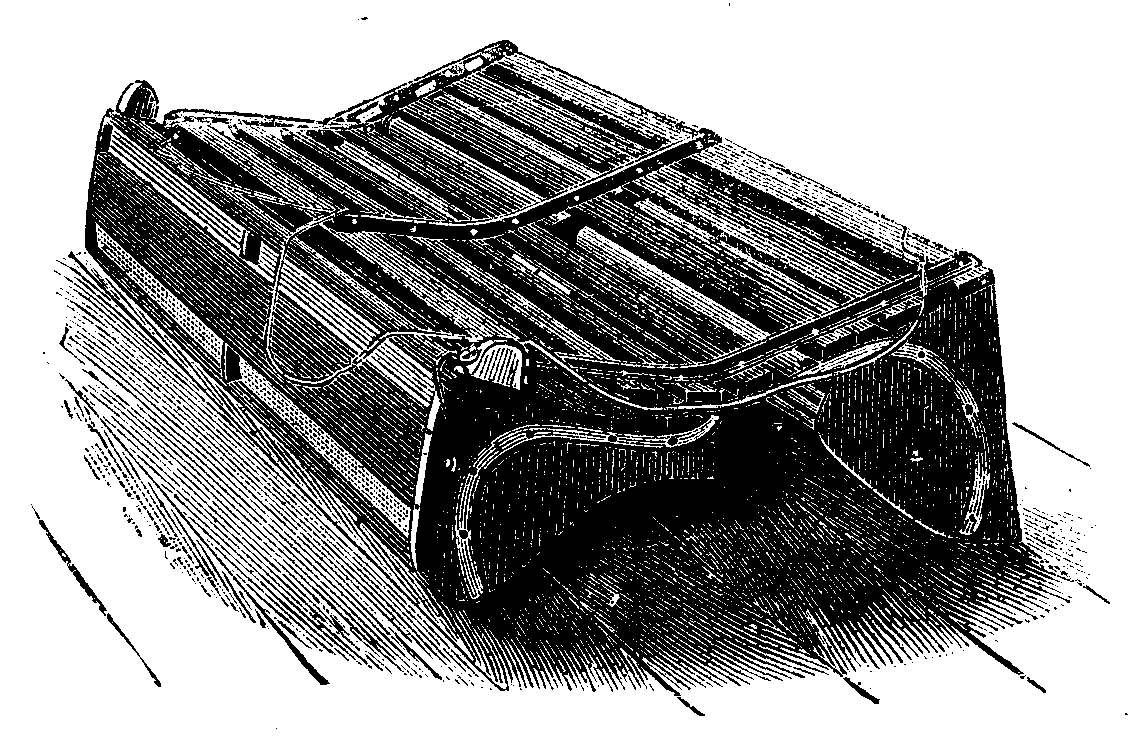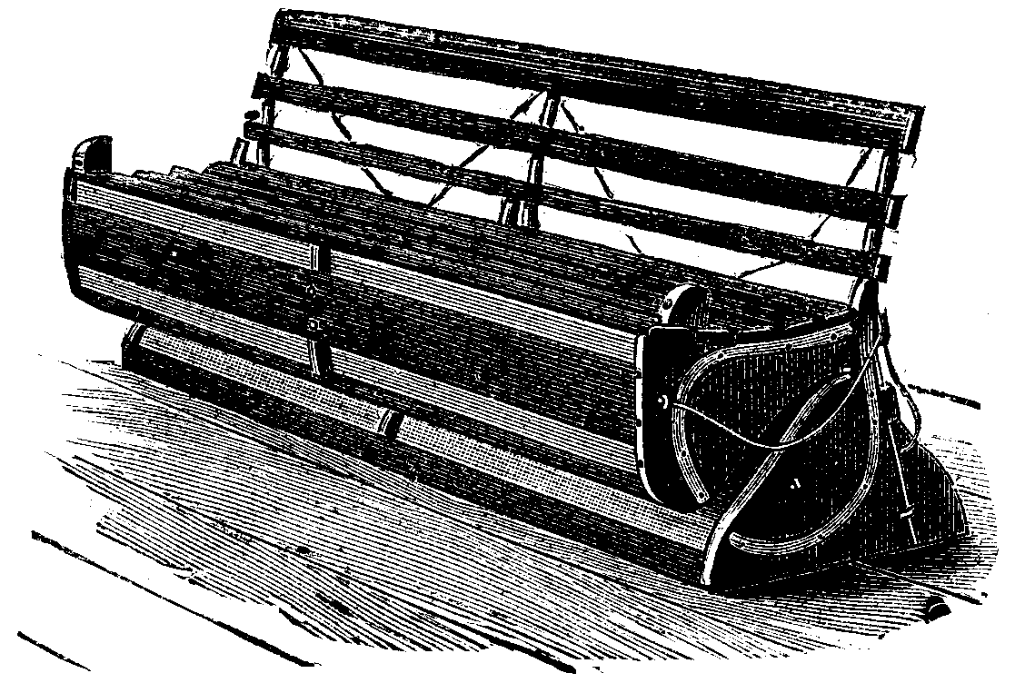 The seat life buoy, shown in Fig. 2, serves as an ordinary deck seat, being about 8 ft. long, and it consists of two portions, hinged at the back. When required for use as a life buoy, it is simply thrown forward, the seat being at the same time lifted upward, so that the top rail of the back engages with the two clips, shown at either end of the seat, and the whole structure then forms a rigid raft, as will be seen from Fig. 3. Several other appliances were shown at the Westminster Aquarium on April 13, but the two rafts we have selected for illustration will give a sufficiently correct idea of the general principles upon which the apparatus is based.—Industries.