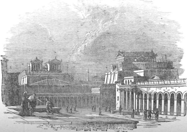 It most not be supposed, however, that this popular power was shared by all the inhabitants of the city. At one time, when the population of the city was about three millions the number of free citizens was only three hundred thousand. The rest were laborers, artisans, and slaves, who had no voice in public affairs. The free citizens held very frequent public assemblies. There were various squares and open spaces in the city where such assemblies were convened, and where courts of justice were held. The Roman name for such a square was forum. There was one which was distinguished above all the rest, and was called emphatically The Forum. It was a magnificent square, surrounded by splendid edifices, and ornamented by sculptures and statues without number. There were ranges of porticoes along the sides, where the people were sheltered from the weather when necessary, though it is seldom that there is any necessity for shelter under an Italian sky. In this area and under these porticoes the people held their assemblies, and here courts of justice were accustomed to sit. The Forum was ornamented continually with new monuments, temples, statues, and columns by successful generals returning in triumph from foreign campaigns, and by proconsuls and praetors coming back enriched from their provinces, until it was fairly choked up with its architectural magnificence, and it had at last to be partially cleared again, as one would thin out too dense a forest, in order to make room for the assemblies which it was its main function to contain.