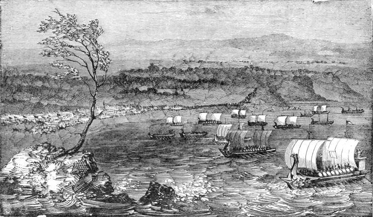 The two ancient historians, whose records contain nearly all the particulars of the early life of Caesar which are now known, give somewhat contradictory accounts of the adventures which befell him during his subsequent wanderings. They relate, in general, the same incidents, but in such different connections, that the precise chronological order of the events which occurred can not now be ascertained. At all events, Caesar, finding that he was no longer safe in the vicinity of Rome, moved gradually to the eastward, attended by a few followers, until he reached the sea, and there he embarked on board a ship to leave his native land altogether. After various adventures and wanderings, he found himself at length in Asia Minor, and he made his way at last to the kingdom of Bithynia, on the northern shore. The name of the king of Bithynia was Nicomedes. Caesar joined himself to Nicomedes's court, and entered into his service. In the mean time, Sylla had ceased to pursue him, and ultimately granted him a pardon, but whether before or after this time is not now to be ascertained. At all events, Caesar became interested in the scenes and enjoyments of Nicomedes's court, and allowed the time to pass away without forming any plans for returning to Rome.