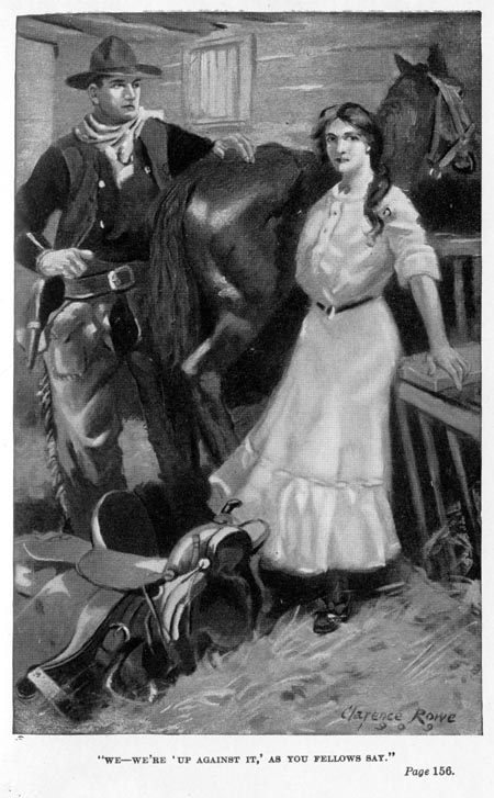 By this time he was close—quite close. "Yuh know I care! And yuh know I want—you. Oh, girlie, girlie!"