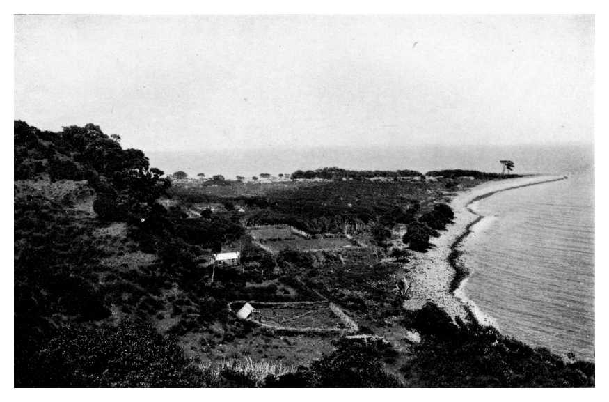 The traditions say that the Maori Pilgrim Fathers left the island of Hawaiki for New Zealand about the beginning of the 15th century. Hawaiki is probably one of the "shores of old romance." Other Polynesian races also claim to have come thence. Mr. Percy Smith gives good reasons for the suggestion that the ancestors of the Maoris migrated from the Society Islands and from Rarotonga, and that their principal migration took place about five hundred years ago. It seems likely enough, however, that previous immigrants had gone before them. One remnant of these, the now almost extinct Moriori, colonised the Chatham Islands, whither they were not followed by the conquering Maori until the present century. The two most famous of the great double canoes of the Maori settlers were the Arawa (shark), and the Tainui (flood-tide). On board thereof, with the men, women, and children, were brought dogs, rats, the gourd and taro root, and the invaluable kumara or sweet potato. The karaka tree, whose glossy, almost oily-looking leaves were in after days to be seen in every village, was another importation. With these tradition ranks the green parakeet and blue pukeko or swamp-hen, two birds whose rich plumage has indeed something in it of tropical gaudiness, at any rate in contrast with the sober hues of most New Zealand feathers. The Tainui canoe was said to have found its last resting-place near the mouth of the Mokau river. A stone still lies there which is treasured by the natives as the ancient anchor of their sacred craft. Some years ago, when a European carried this off, they brought an action against him and obtained an order of the Court compelling him to restore it. Not far away stands a grove of trees alleged to have sprung from the Tainui's skids. Certainly Sir James Hector, the first scientific authority in the Colony, finding that these trees grow spontaneously nowhere else in New Zealand, named them Pomaderris Tainui. But though, for once, at any rate, science was not indisposed to smile on tradition and Maori faith triumphed, and the unbeliever was for a while confounded, it unhappily seems now quite certain that the congener of Pomaderris Tainui is found only in Australia, one of the few lands nigh the Pacific which cannot have been Hawaiki.