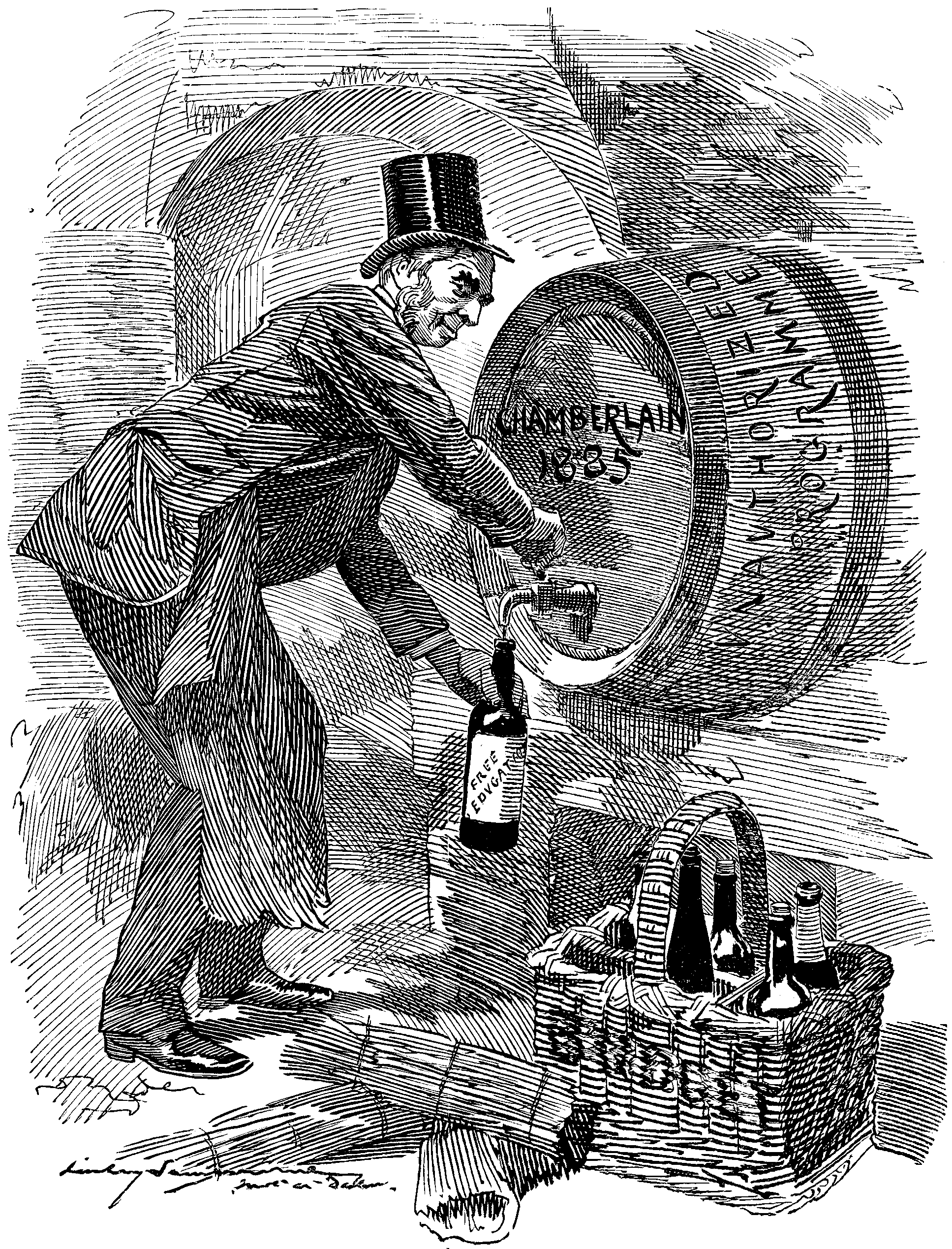 Besides the British Publick is used to our little ways, as we are quite used to theirn, and they talk to us in that nice confidenshal tone about the different wines, et setterer, as no true Born Englishman ewer yet spoke to a Frenchman, much less a German. No, no, the hole thing's a mistake, as will soon be found out. And what a groce injustice to the native article. These sollem-looking Germans, not content with pushing our poor sons from their stools in our counting-houses, as Macbeth says, must now cum and take the werry bread out of their poor Father's mouths. Oh pale-faced shame, where's your blush? And think too of their himperance. Why they are acshilly a going for to have a hexibition of their own, here in Lundon, and does anyone think as they'll write up on the gates, "Only English Waiters need apply?" Why the hidear is ridiclous, but where's the difference I should like to kno. No, no, no one can kno better than I do, from a long and waried xperience, from the Grand old City, the ome of ospitality and turtle soup, to the "Grand" and "Metropole," the omes of lucksury and refinement, that the British Public likes his British Waiter, he likes his nice respecful ways, the helligent Bow with which he ands him his At, and the graceful hair with which he receeves his little doosure.