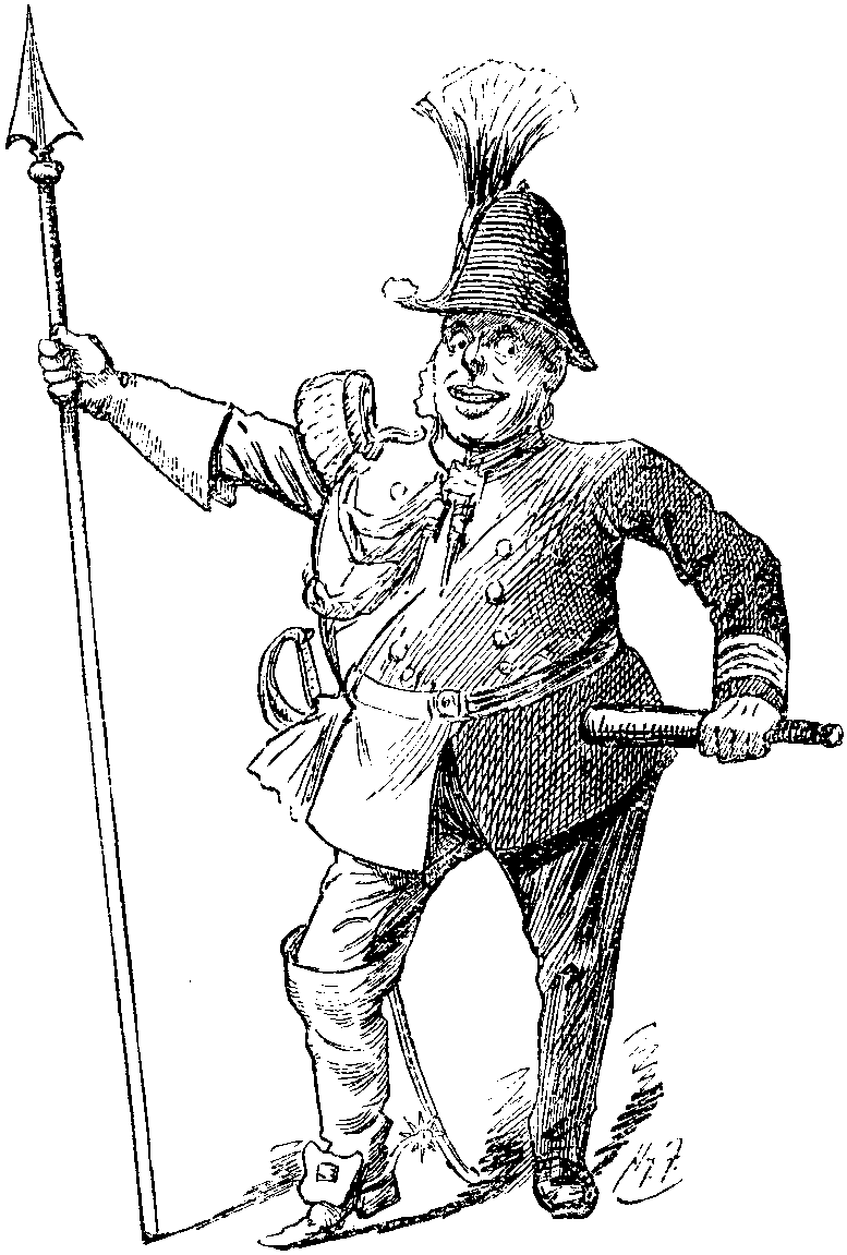 "Capital!" cries the Captain. "Look here, Mrs. GOSLING,—I've just thought of a little joke. I want to see if he'll know me. Now you go and talk to him a little, and—presently, you know—say there's a man in the drawing-room, who's come to wind the clocks, and then I'll come in to where you are, and make believe to wind the clock there—do you see? I'd bet anything he won't spot me at first!"