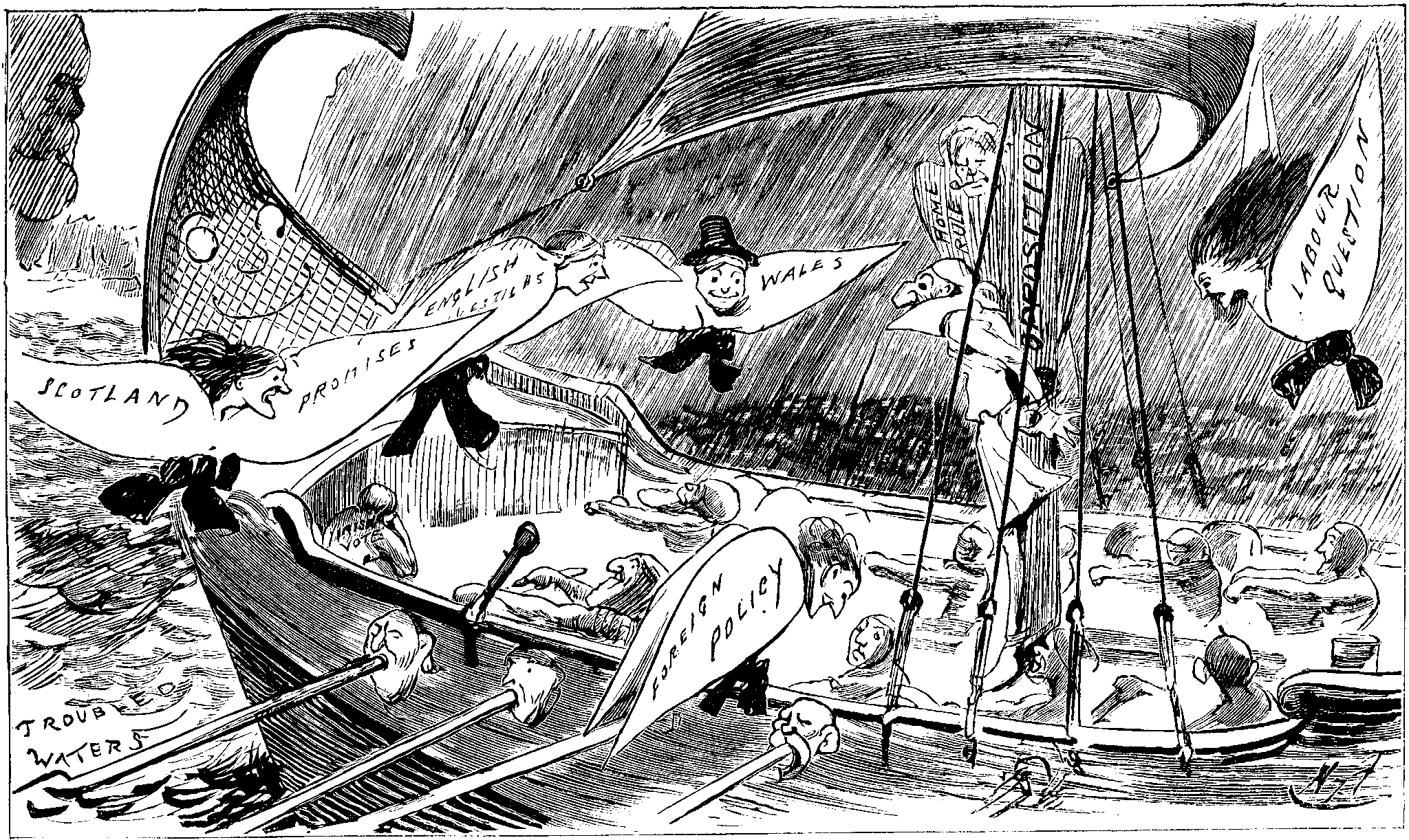 Don't skip ELLEN TERRY's Memoirs in The New Review. Nothing much in them, but delightfully chatty and amusing. See Murray's Magazine for Mr. GLADSTONE on the Murray Memoirs, in the number for the "Murray Month of May." When you are routing about for something short and amusing, take up the Cornhill, and read A Flash in the Pan. I have commenced, says the Baron, my friend GEORGE MEREDITH's One of the Conquerors. Now G.M. is an author whose work does not admit of the healthy and graceful exercise of skipping. Here the skipper's occupation is gone. G.M.'s work should be taken away by the reader far from the madding crowd and perused and pondered over. If Ponder's End is a tranquil place as the name implies, then to that secluded spot betake yourself with your GEORGE MEREDITH, O happy and studious reader, and ponder in peace.