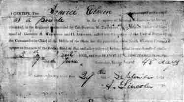 A DISCHARGE FROM SERVICE IN BLACK HAWK WAR SIGNED BY ABRAHAM LINCOLN.