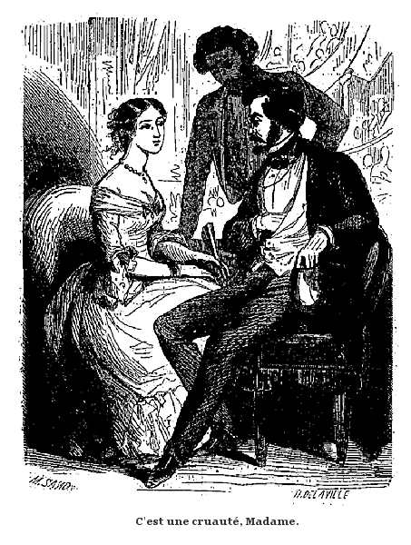 «Je sais qu'il y a deux mois, lorsque vous m'avez connue dans un état voisin de la misère, vous avez songé à m'épouser. J'ai vu là la noblesse de votre âme, et cette pensée que vous avez eue vous assure à jamais mon estime! et, plus encore, une sorte de respect pour votre caractère.»