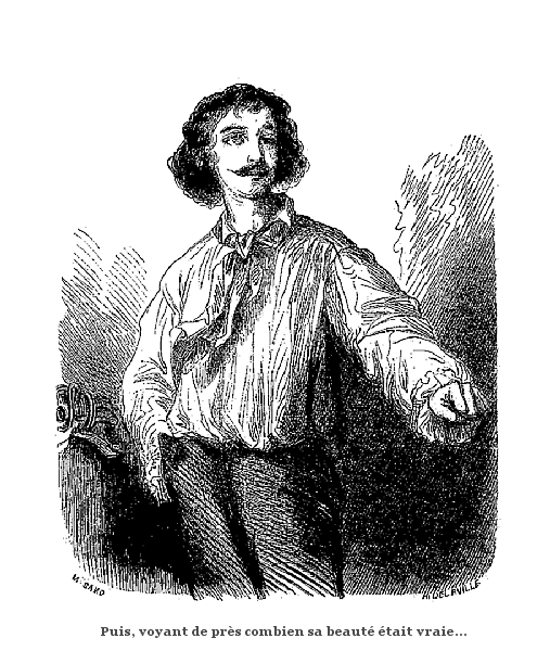 Je vis qu'ils s'aimaient sans vouloir se l'avouer à eux-mêmes, et je regardai Stella, qui était belle comme un ange en me présentant un masque pour la scène du bal. Elle avait cet air généreux et brave d'une personne qui renonce à vous plaire sans renoncer à vous aimer. Un élan de coeur, plein de vaillance, qui ne me permit pas d'hésiter, me fit tirer de mon sein le noeud cerise que j'y avais caché, et je le lui montrai mystérieusement. Tout son courage l'abandonna; elle rougit, et ses yeux se remplirent de larmes. Je vis que Stella était une sensitive, et que je venais de me donner pour jamais ou de faire une lâcheté. Dès ce moment, je ne regardai plus en arrière, et je m'abandonnai tout entier au bonheur, bien nouveau pour moi, d'être chastement et naïvement aimé.