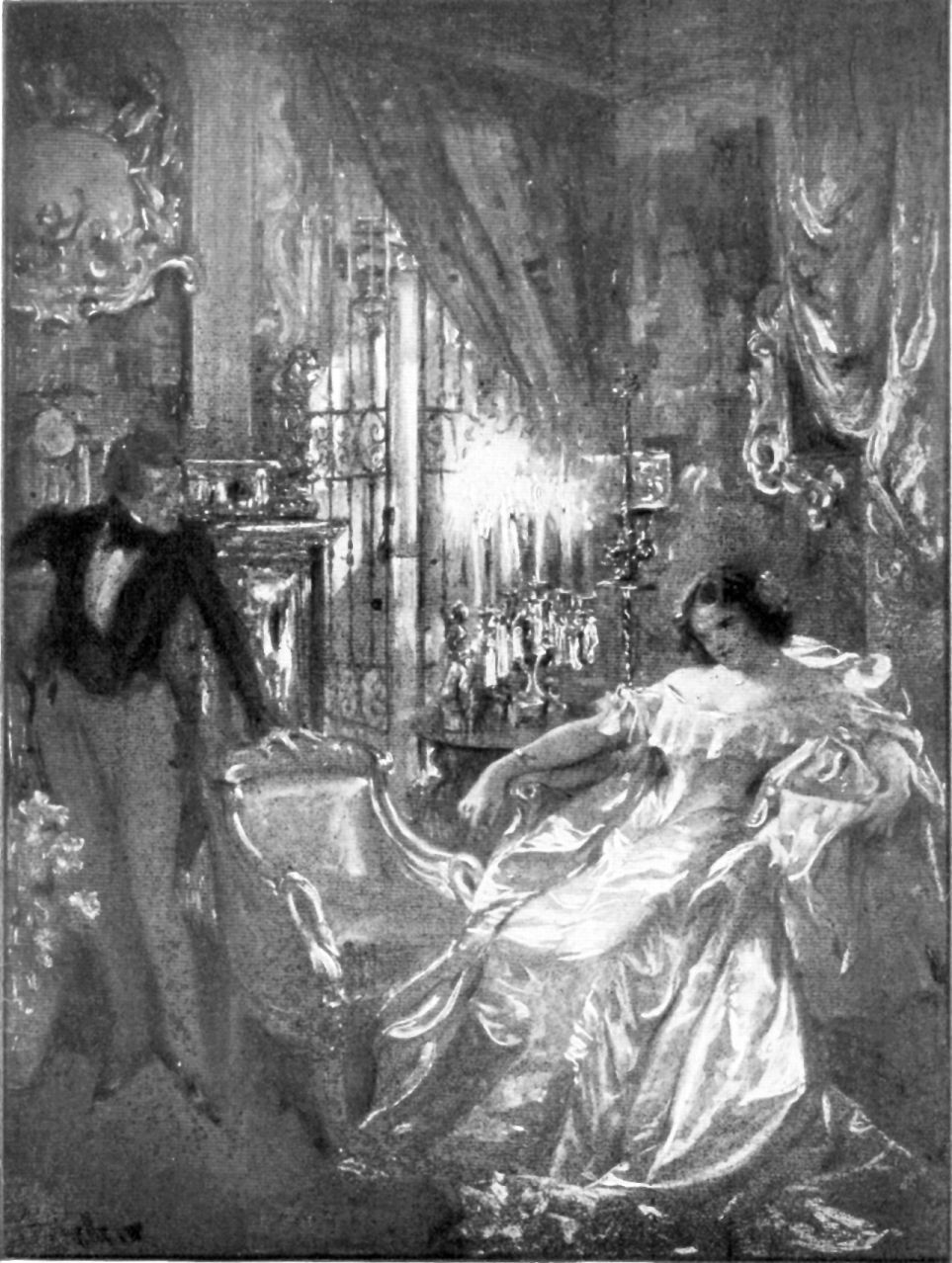 We all three now sat silent in the little room where the candles guttered in the great glass cylindres on the mantel—an apartment scarce better lighted by the further aid of lamps fed by oil.