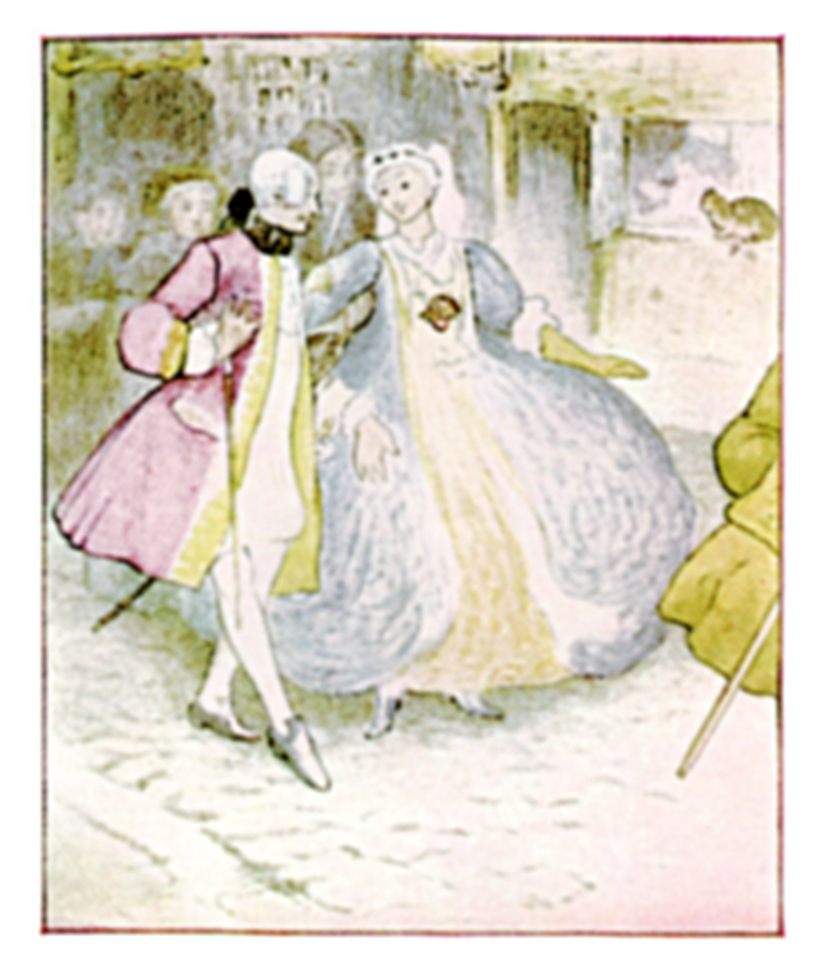 Out stepped a little live lady mouse, and made a curtsey to the tailor! Then she hopped away down off the dresser, and under the wainscot.