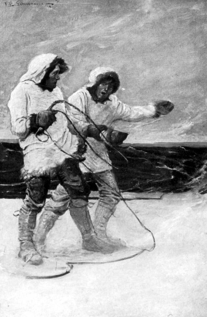 And so Abel Zachariah, being a man of caution, held aloof from the boat which he had so eagerly set out to salvage; and sitting engrossed in contemplation, he in his skiff and the dead man in the derelict drifted for a while side by side toward Itigailit Island. And thus he was sitting silent and inactive when suddenly he was startled by the cry of a child in distress.