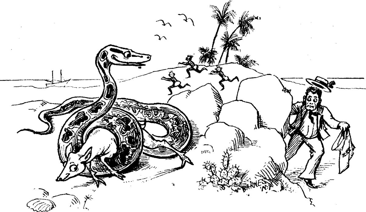 Some weeks ago a story was told of the wreck of a ship carrying a circus, and that the big python had escaped, and was in Rock Key, off the Florida coast.