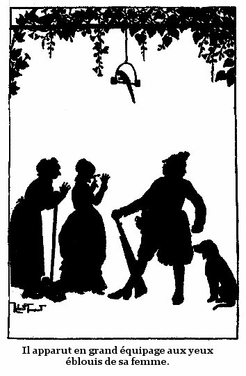 Il consulta ses amis, qui lui enseignèrent des remèdes de bonnes femmes, et ne s'en trouva pas soulagé. Sur le conseil de son médecin, il prit un port d'armes, acheta un harnachement de chasseur et un chien. Puis, un jour, il apparut en grand équipage aux yeux éblouis de sa femme et de sa servante, fier comme Artaban et beau comme Apollon Pythien.