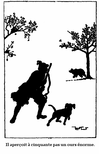 «L'animal! reprit-il d'une voix tremblante d'effroi et d'indignation, il va mettre cet ours en fureur; et alors, il n'en sera plus le maître, et alors... Viens vite, Azor, sauvons-nous, mon ami, pendant qu'il en est temps encore.»