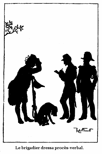 Le brigadier dressa procès-verbal. Le conseiller municipal songea avec horreur qu'il lui faudrait comparaître en justice, et soudain une goutte de sueur froide perla à l'extrémité de chacun de ses cheveux.
