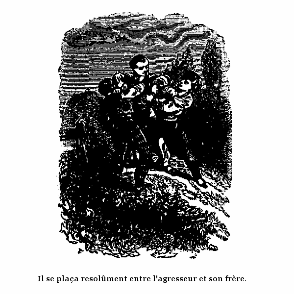 Olivier était un garçon fort doux; il supportait sans se plaindre les mauvais tours de ses camarades, qui abusaient souvent de sa patience. Un jour qu'il se promenait avec son petit frère, ils s'amusèrent à tourmenter l'enfant; l'un d'eux alla même jusqu'à le frapper. Olivier, sortant de son caractère pacifique, se plaça résolûment entre l'agresseur et son frère, et, montrant ses poings fermés, il dit: «Le premier qui touchera cet enfant aura affaire à moi!»