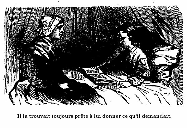 Auguste était fort malade, et sa mère veillait auprès de son petit lit. A quelque heure du jour et de la nuit que l'enfant se réveillât, il la trouvait toujours prête à lui donner ce qu'il demandait.