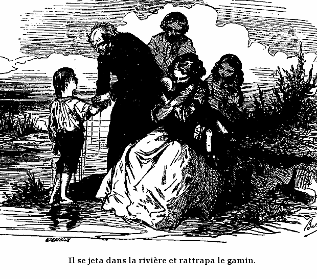 La pauvre mère poussa un cri; le grand frère de Théodore se jeta dans le ruisseau et le retira tout transi de peur et de froid.