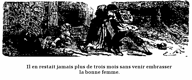 «Mon Dieu, grand'mère, que nous te plaignons d'être si mal logée! Tu n'as ni persiennes, ni rideaux à ta fenêtre, et tes murs sont tout nus. On ne trouve seulement pas chez toi un fauteuil pour s'asseoir; que tu dois donc te trouver malheureuse!