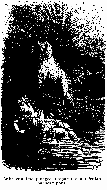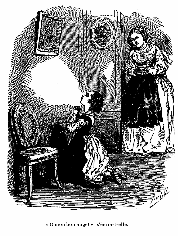Mme Moreau prit sa petite fille dans ses bras et monta tout doucement jusqu'à sa chambre. Elle entendit en effet une espèce de hurlement sourd, et Jenny, serrant le cou de sa mère entre ses petits bras potelés, se cacha la figure sur son épaule.