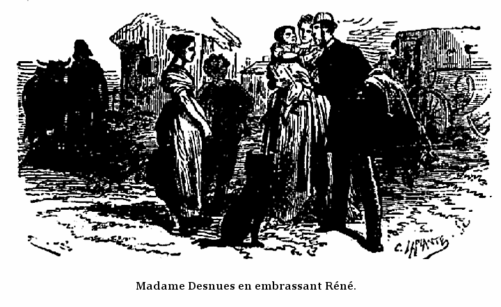 La pauvre mère, entendant cela, voulut aller aussi retrouver son enfant, quelque prière qu'on lui fît pour qu'elle attendît au lit le retour de René. Elle monta en voiture, et Jacques les eut bientôt conduits à sa cabane.