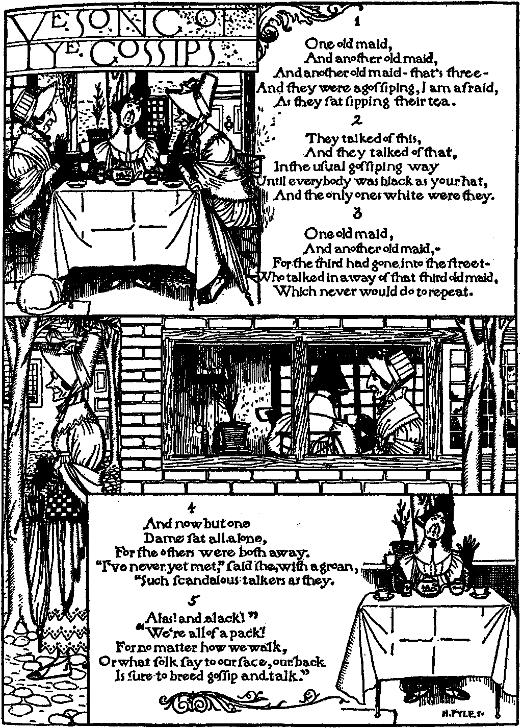 There was a woman once, and she had three daughters. The first daughter squinted with both eyes, yet the woman loved her as she loved salt, for she herself squinted with both eyes. The second daughter had one shoulder higher than the other, and eyebrows as black as soot in the chimney, yet the woman loved her as well as she loved the other, for she herself had black eyebrows and one shoulder higher than the other. The youngest daughter was as pretty as a ripe apple, and had hair as fine as silk and the color of pure gold, but the woman loved her not at all, for, as I have said, she herself was neither pretty, nor had she hair of the color of pure gold. Why all this was so, even Hans Pfifendrummel cannot tell, though he has read many books and one over.
