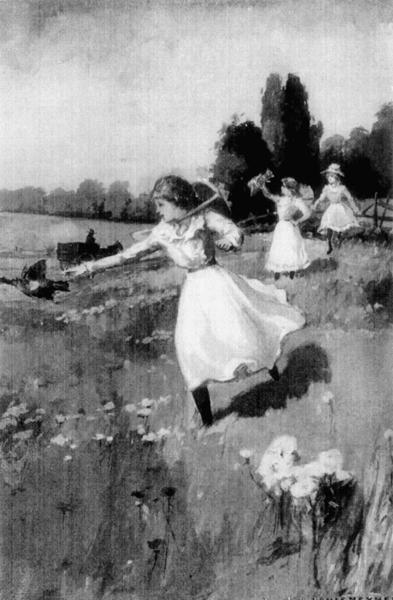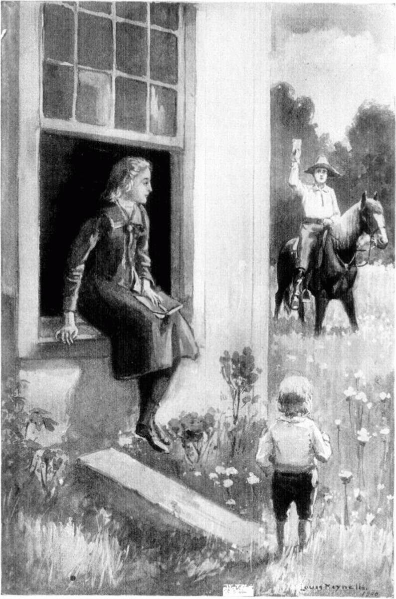The wide white gate was standing open now, and she drew rein, peering anxiously in. She hoped for the sight of a familiar freckled face or the sound of a welcoming whoop. But it was so still everywhere that all she saw was the squirrels playing hide and seek in the beech-grove around the house, and all she heard was the fearless cry, "Pewee! pewee!" of a little bird perched in a tree overarching the gate. It balanced itself on the limb, leaning over and cocking its bright bead-like eyes at her, as if admiring the sight.