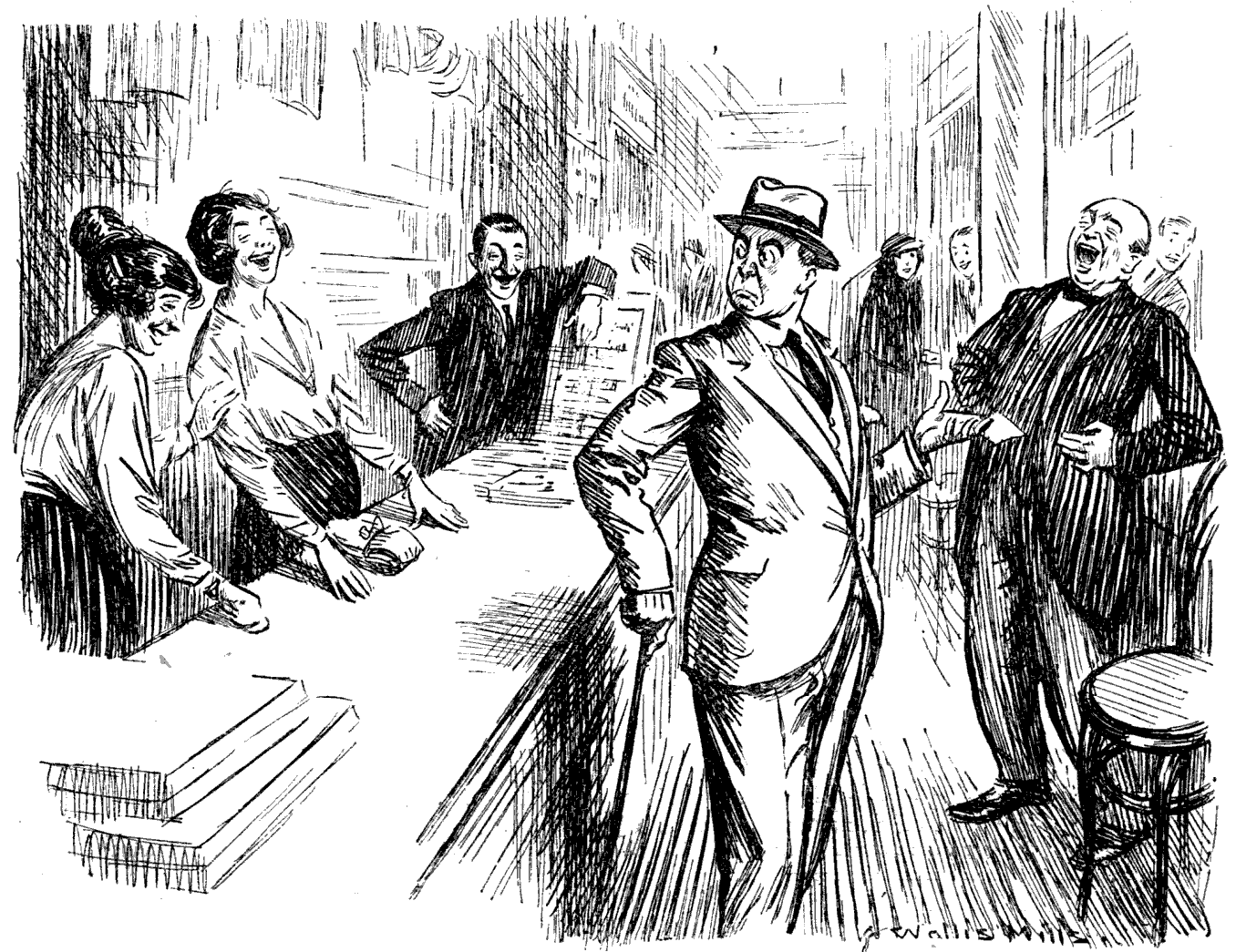 Tommy. "Can't take more'n eleven, guv'nor. Lost my second-best evening trousers on the Somme."