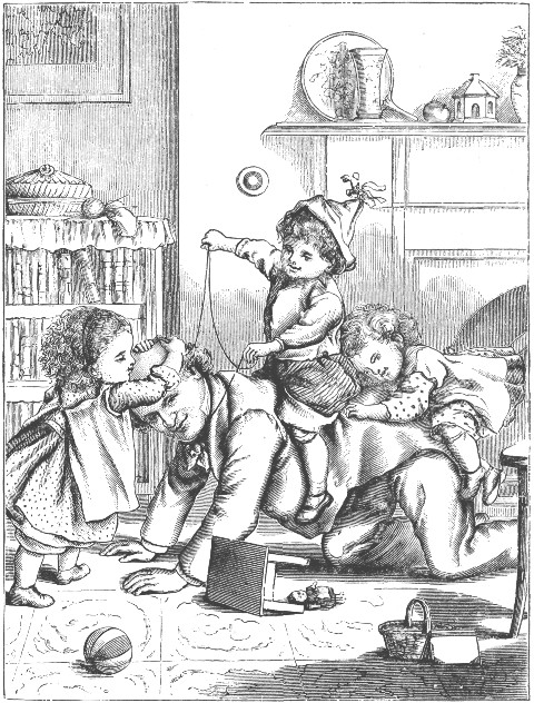 The lessons are learned, and now we all join hands, and march to the play-ground. And a nice play-ground we have, and every day when it is fine we enjoy ourselves very much. Some like to swing round the great pole, others join hands and form a large ring, and then we try to see which side of the ring can pull the hardest. Others like to run a race, and try who will run three times round the play-ground first. When it is wet we march round our large school-room, keeping time with our feet. And then we have such splendid fun playing "Tag," first one, and then the other, racing round over benches, and under and around the desks, until we are fairly tired out. Then we hear the bell ring, and we march in, two by two, to commence our lessons again.