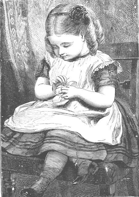 Little Ruth, like the woman of old of that name, Returns from the field, where she gathered the grain. |